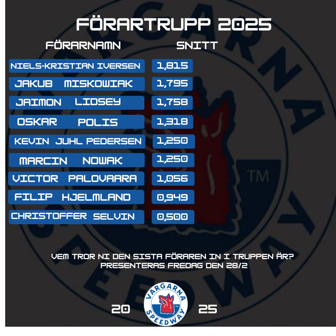 Vem tror ni den sista föraren in i truppen är? Presenteras fredag den 28/2 kl 18.00