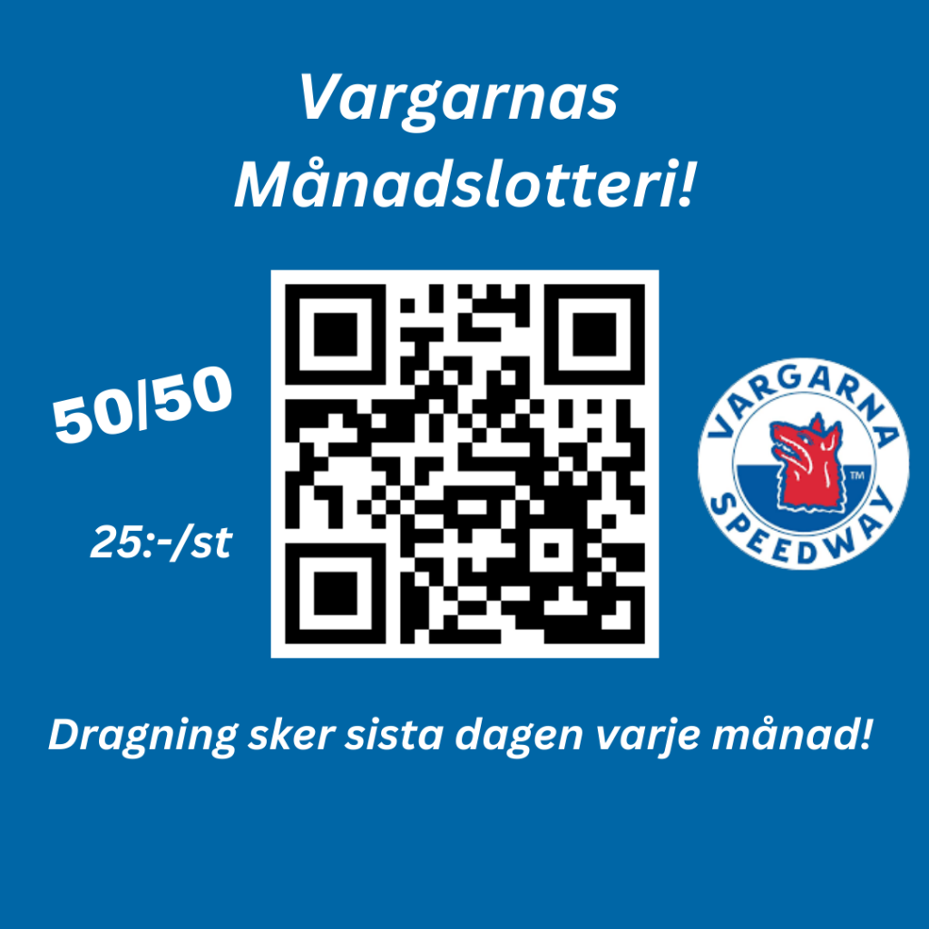 Idag är sista dagen för månadslotteriet i April , passa på och ta chansen att vinna pengar samtidigt som du stöttar klubben Gå in direkt via länken nedan: https://lotty.se/vargarna/cxth eller läs av qr-koden direkt i bilden nedan. Dragning sker den sista April och vinnaren meddelas direkt via sms och vinsten…