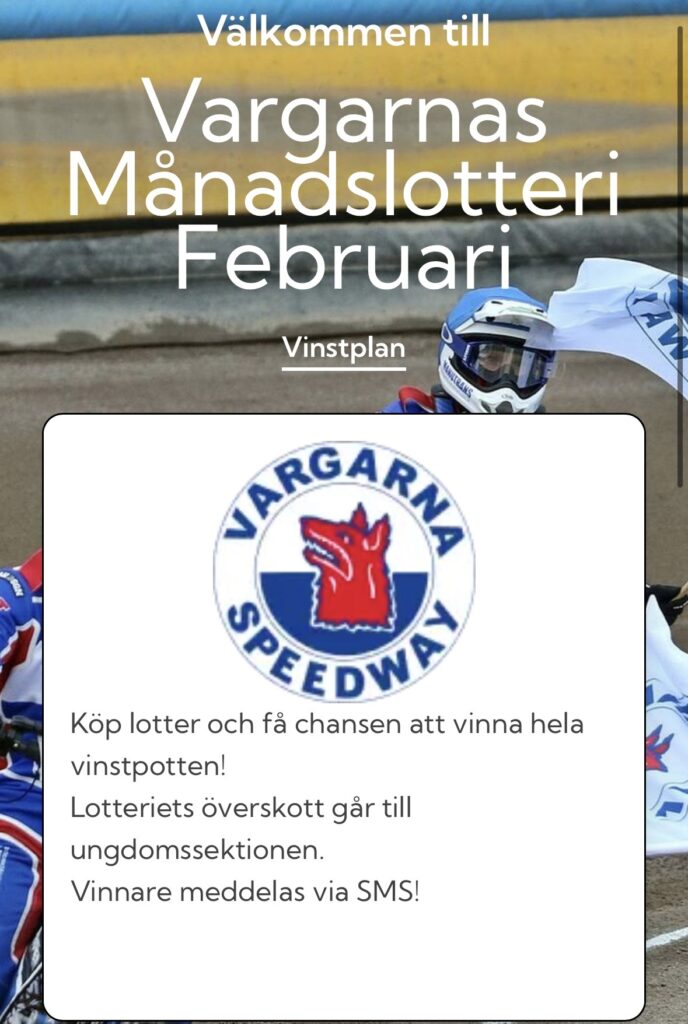 Vill du stötta Vargarna Speedways ungdomssektion och samtidigt ha chans att vinna?Då är det dags att säkra din lott 🎟️Ett enkelt sätt att stötta framtidens förare – och kanske stå som nästa vinnare! Länk direkt till lotteriet hittar du här: 👉 https://lotty.se/vargarna/ptdr